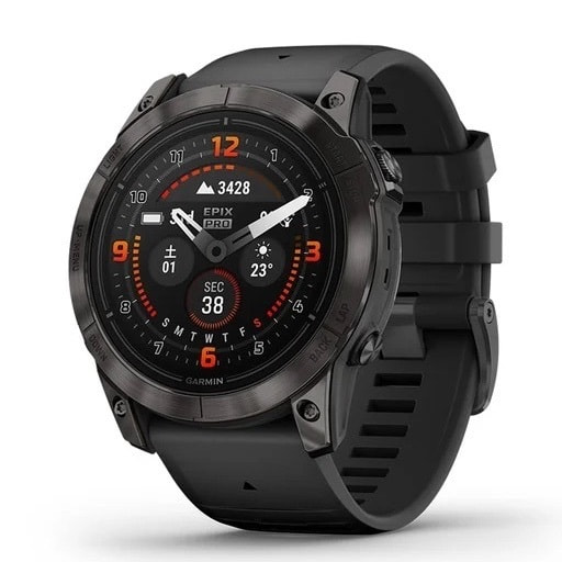 明るい日光でも見やすいAMOLEDディスプレイ、LEDフラッシュライトを搭載。タッチ操作にも対応するフラッグシップGPSウォッチ。お得な新価格、見やすい大型モデル。