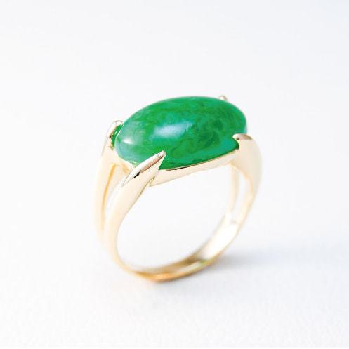 美しいグリーンを引き立てるため、プラチナの元枠からK18に変更。