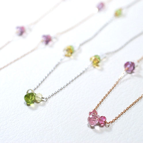 カラーストーンの入ったネックレスはお好きな色石でオーダー可能。